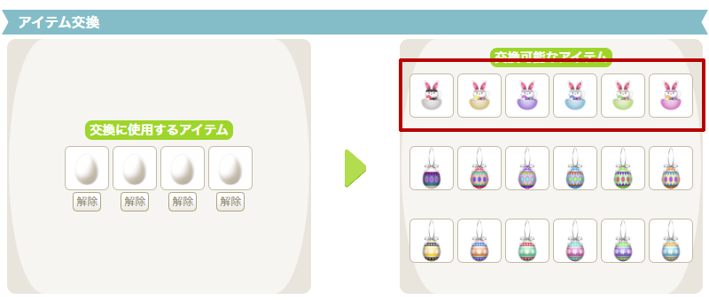 今年新しく作成できるインテリア雑貨の必要なたまご数は、4個のたまうさ飾りです。