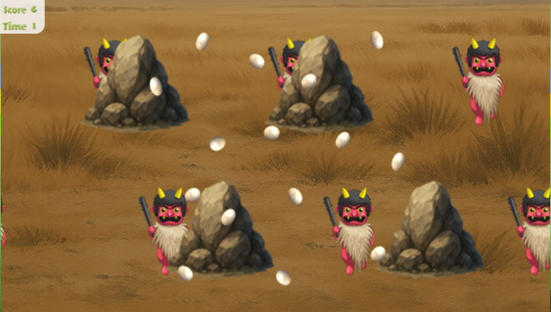 左右から鬼がたくさん出てきますので、豆をぶつけます。