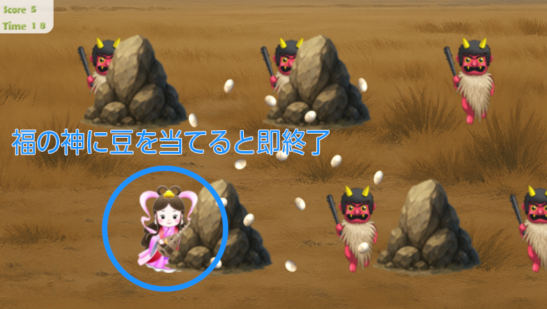 福の神に豆を当ててしまうと、一発終了という鬼畜さです(鬼だけに)!